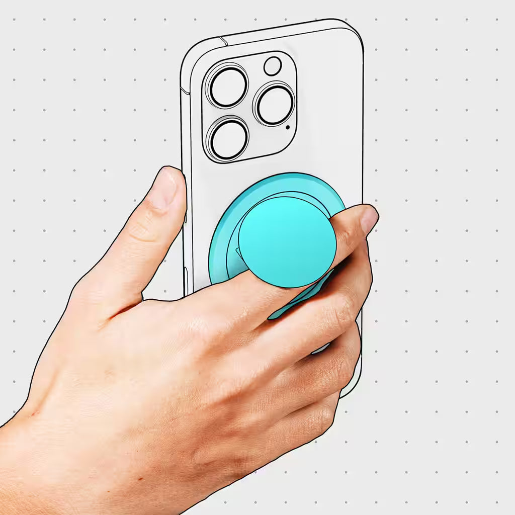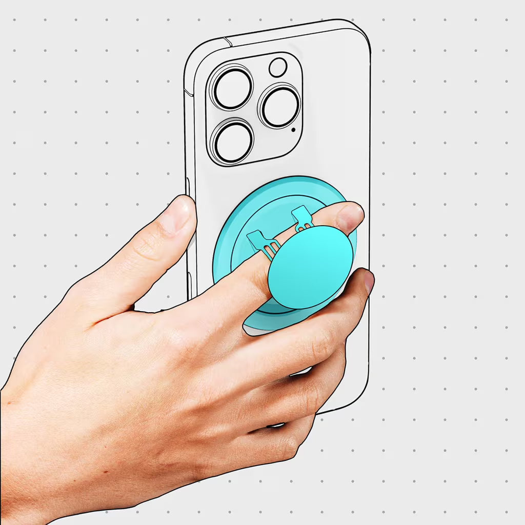 Now Adhesive Free. Grip it. Spin it. Kick it. Stick it. Swap it. Pocket. Use Snap Grip 5 as a one or two finger grip with full 360° rotation, kick it into a rock-solid stand, or snap it to anything metal. The glueless MagSafe® design makes swapping accessories effortless and, at just 3mm thin, it slides into your pocket without a snag. Built with a sleek metal trim and includes an adaptor for non-iPhones & cases.
